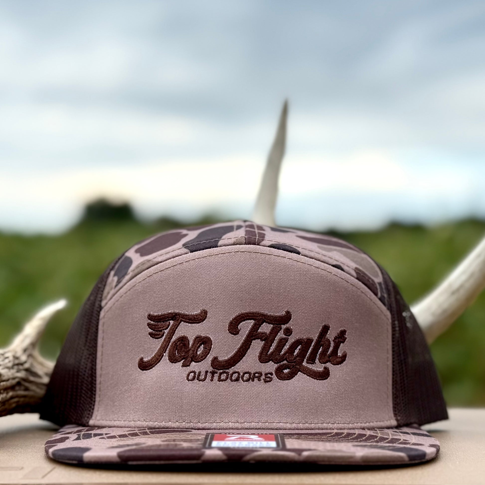 Dark Brown embroidery on an Old School Richardson Panel 7 snapback.